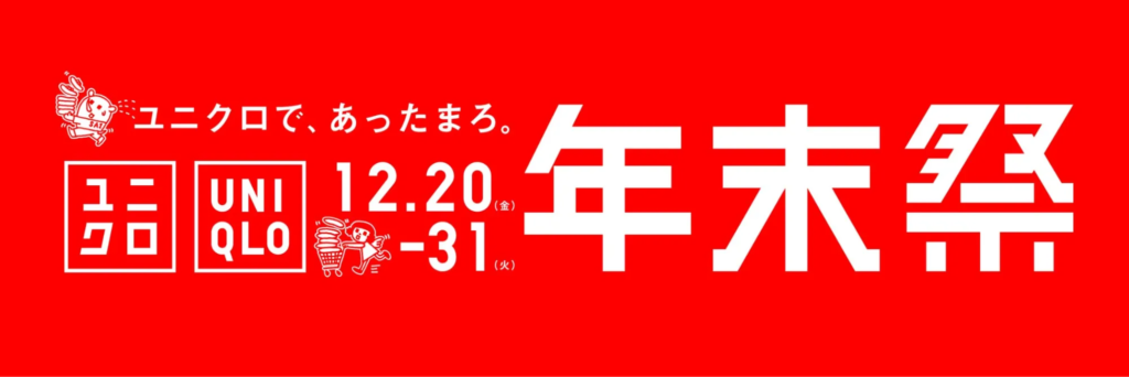 ユニクロ年末祭では、ユニクロの代表的な冬のあったか商品が値下げされます。ユニクロ年末祭は例年、12月の第3金曜日から12月31日まで開催される傾向にあります。そのため、2025年の開催期間は12月19日(金)~12月31日(水)までと予想。