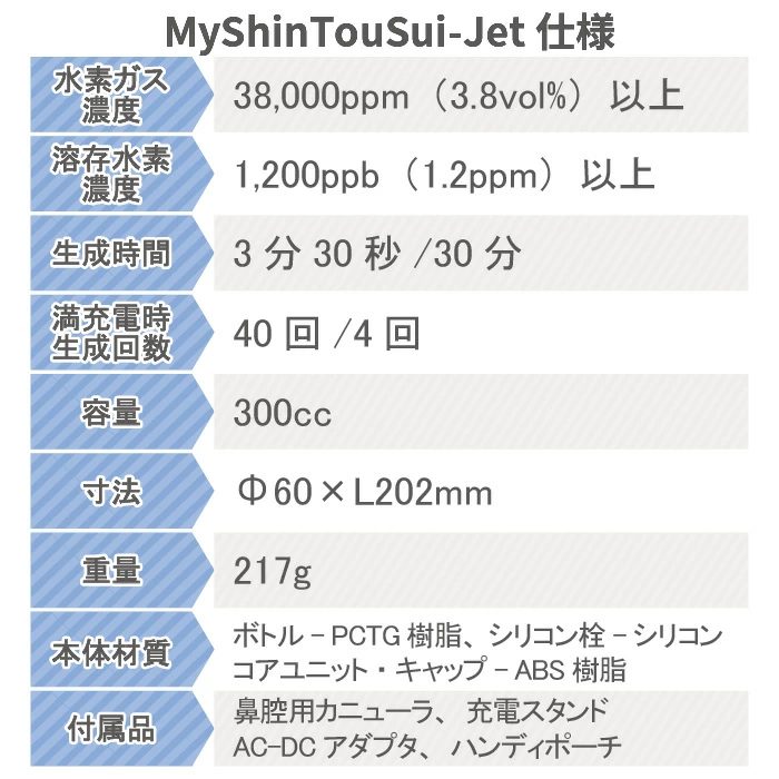 【MyShinTouSui-Jet】ボトル型水素生成器に関する追加情報