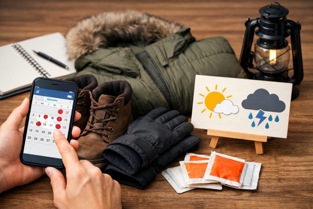 厚手の上着、手袋、靴下などを用意すると快適度が大きく変わります。