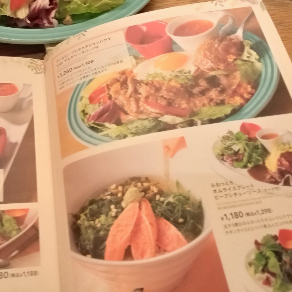 例えば、人気メニューのオムライスやパスタ類は、単品で1,100円〜1,300円前後。