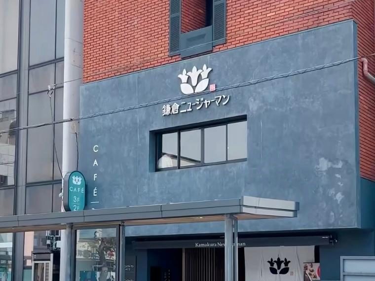 JR鎌倉駅東口のロータリーに位置するかまくらニュージャーマンの旗艦店は、1階にお菓子の販売スペースを備え、2階と3階はカフェスペースとして利用されています。観光の合間にも気軽に立ち寄れる便利な立地で、駅前ならではの魅力を持つ一軒です。駅前に位置するため、アクセスが良く見つけやすいですが、「ここにお店があったんだ」という意外性もあります。