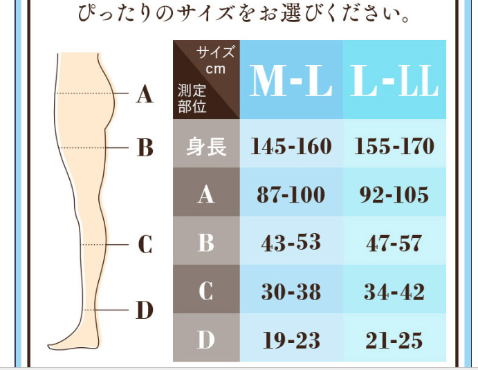 サイズ選びで失敗しないためには、メーカーが提示するサイズ表に基づき、自身の太ももやふくらはぎの周囲径を正確に計測し、無理なく着用できるサイズを選ぶことが重要です。