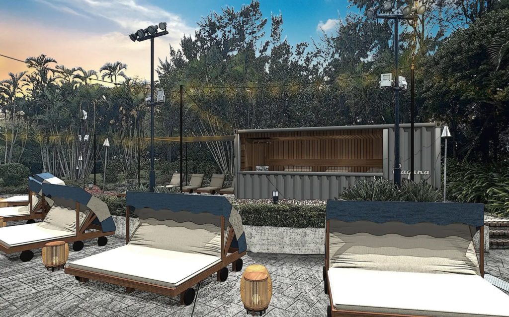 サウナ室はガラス張りのコンテナ型「ラグナサウナ」で、室内からガーデンとプールを一望できる設計になっています。世界的なサウナメーカーであるHarvia社の高性能ストーブCILINDRO PRO26を導入しており、セルフロウリュによる本格的な熱体験の後に、広大なプールへダイブする解放感は、他の施設では決して味わうことができません。