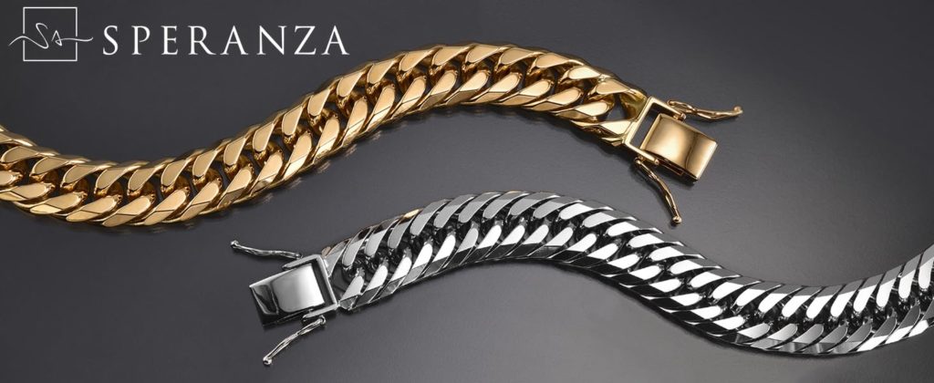 ジュエリーブランド「SPERANZA」では、喜平ネックレス・ブレスレット・ピアス・リングなどの高品位素材のジュエリーを展開しております。ゴールドやプラチナを使用した高級感のあるアイテムは、男性・女性を問わずコーデのアクセントに最適です。デイリー使いやパーティーシーンはもちろん、大切な方へのプレゼントにもオススメです。
