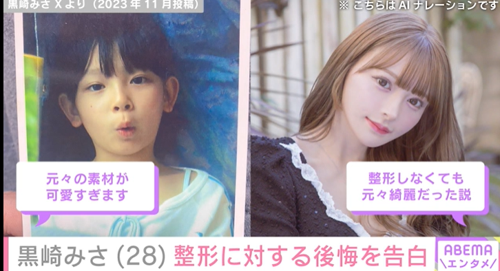 近年、整形をカミングアウトする芸能人が増えている中、人気インフルエンサーの黒崎みさが整形後の後悔を吐露し、大きな注目を集めています。