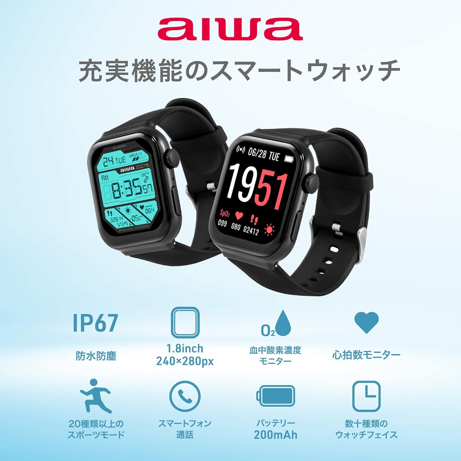 aiwaデジタル スマートウォッチ JA2-SMW0001 ブラック