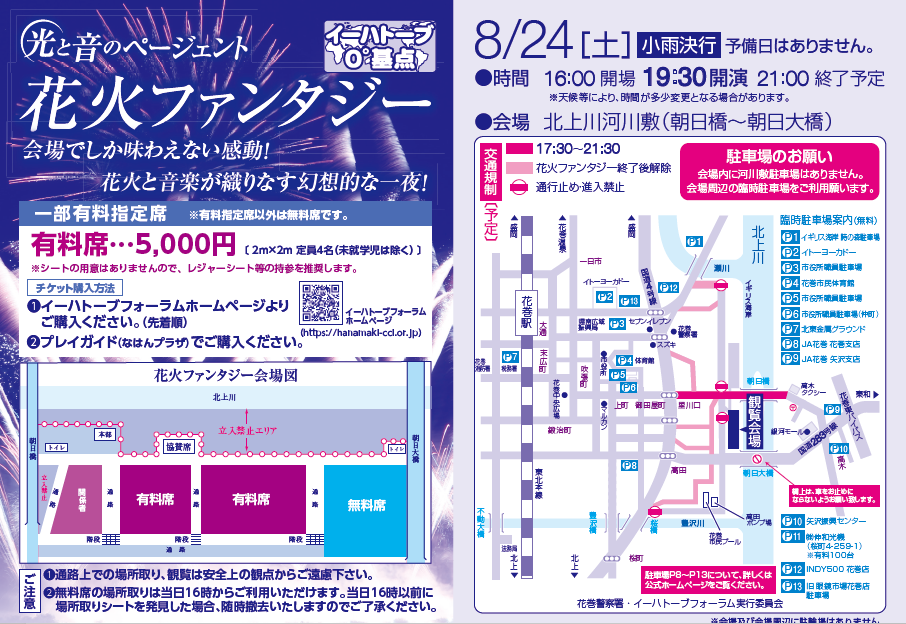 イーハトーブフォーラム花巻花火大会2025の開催に伴い、会場周辺で交通規制が実施されます。