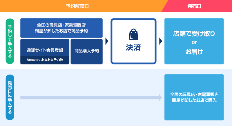 (※抽選販売の場合は異なります。※早期ご予約終了したり、ご予約期間が通常と異なる商品もございます。購入方法は販売サイトでご確認ください。)