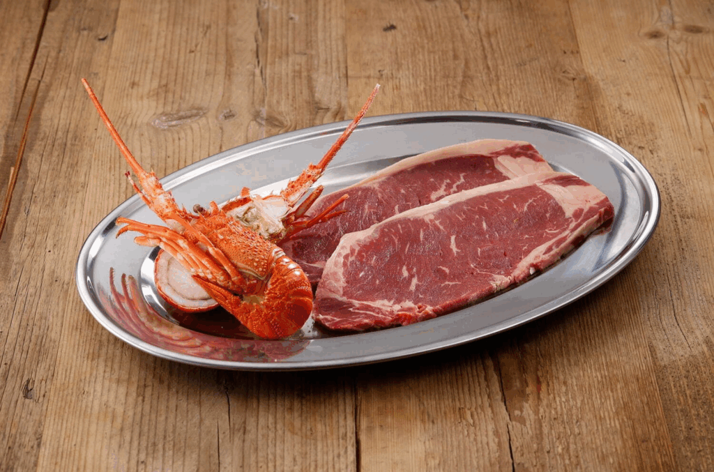 「40回開催記念プラン」もしくは「スタンダードプラン」を注文すると、アンガスサーロインステーキとハーフロブスターボイルがのったアニバーサリープレートを特別価格で注文できる。