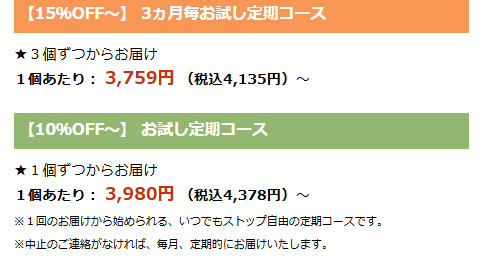しかし、「商品は試してみたいけれど、1年間の契約はちょっと不安…」という方には、お試し定期コースがおすすめです。