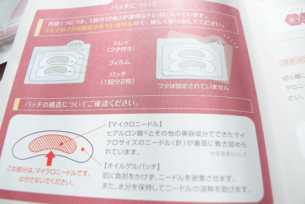 ヒアロディープパッチは、ヒアルロン酸を主成分としたマイクロニードルパッチで、寝ている間に乾燥小じわを目立たなくする効果があります。