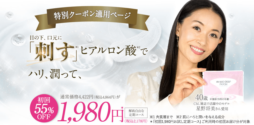 ヒアロディープパッチは、目元や口元の乾燥小じわに悩む方にとって、理想的なスキンケアアイテムです。