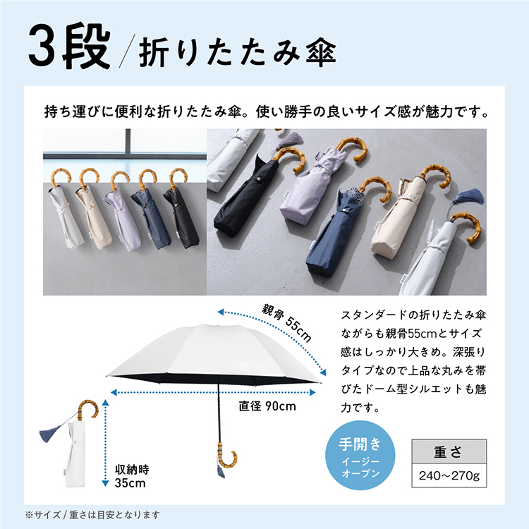 - 軽量で持ち運びやすく、晴雨兼用で便利です。