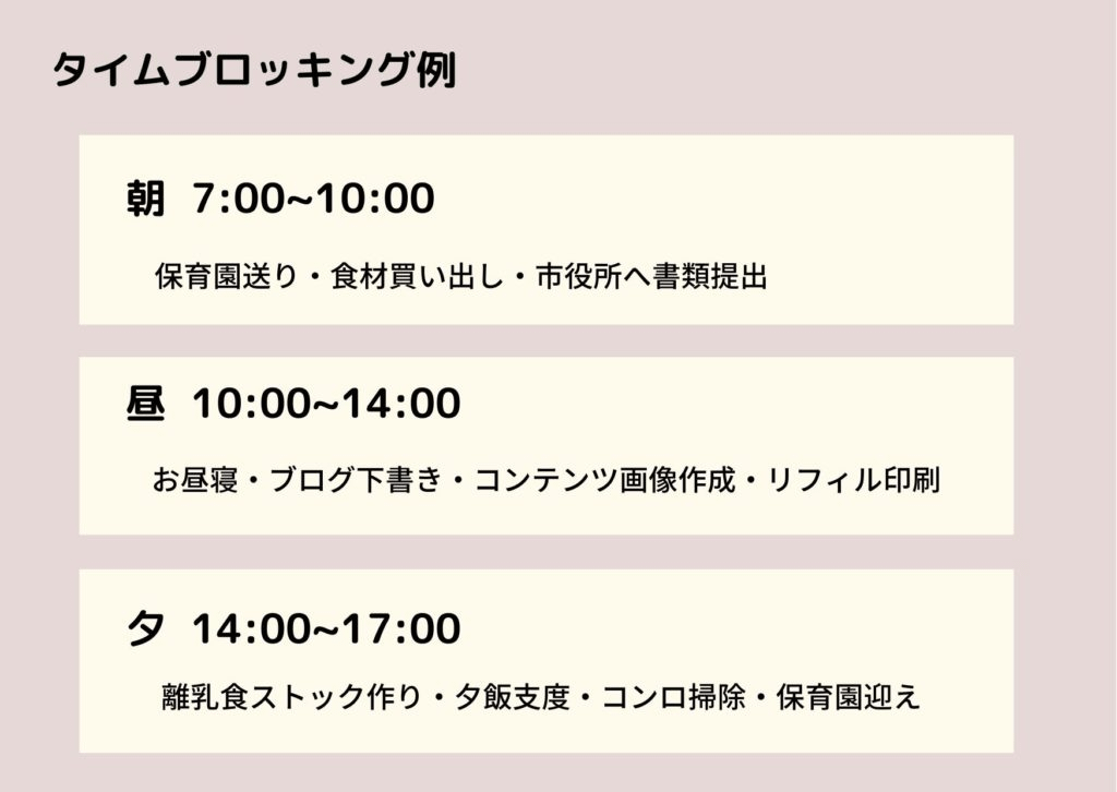 次にタイムブロッキングというテクニックを使うと、1日の活動を時間ごとに区切って計画できます。例えば、午前中はリラックス、午後に外で遊び、夕方は友だちと過ごすという具合です。