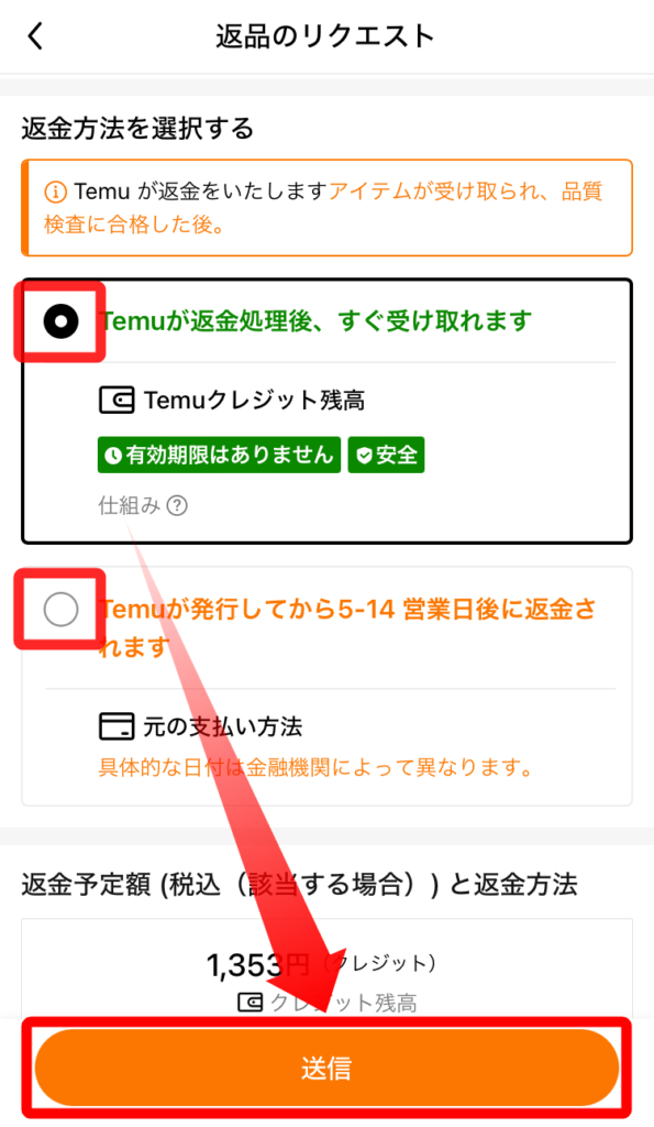 • 商品が届かない場合は返金でき、Temuクレジットで即座に返金される選択肢もある