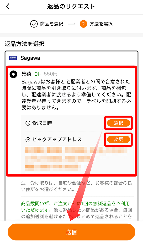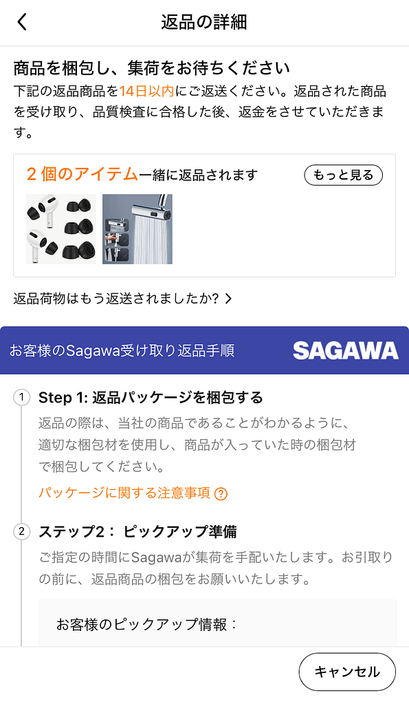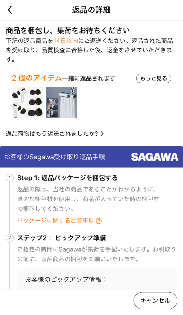 以上が返品手続きの一連の流れです。アプリ上で集荷予約ができる点が非常に便利です。