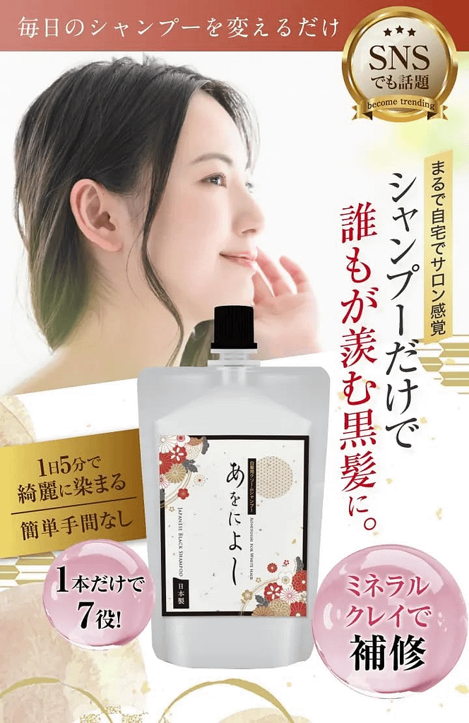 最近話題の「あをによし」という白髪染めシャンプーは、1日たった5分から15分で白髪を目立たなくし、サロン級の美しい黒髪に変えてくれるアイテムです。