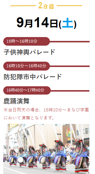 また、神輿パレードや鹿踊り、花巻ばやし踊りなど、多様な伝統文化が一堂に会するこの祭りは、一度訪れる価値がありますね。