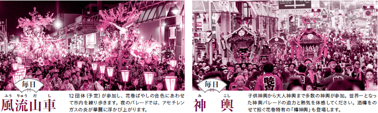 - 豪華絢爛な山車の進化と魅力(昼夜で異なる姿)