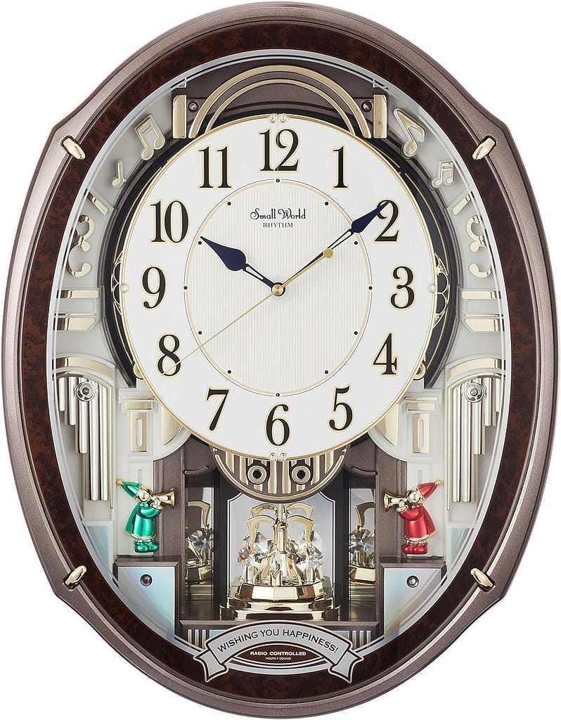リズム時計工業のからくり時計は、時計が見やすく設計されているシンプルな商品です。なんと、48曲も内蔵されていて、童話やクリスマスソングなどのさまざまなメロディを楽しむことができます。時計を見るだけでなく、メロディを聴くだけでも楽しめるのが魅力ですね。特に子供のいる家庭で人気が高いです。曲を楽しめる時計を探している方は、ぜひチェックしてみてください!
