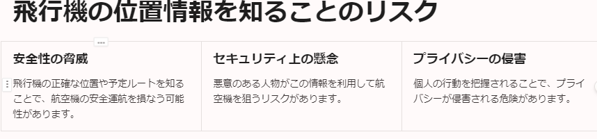特に重要なビジネスフライトや国家的な機密に関わる移動がある場合、フライト情報が公開されることで、悪用されるリスクが高まります。