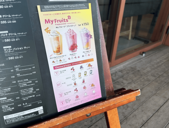 このメニューの特徴は、ブレンドするフルーツ、カップに入れるフルーツ、ホイップクリームのフルーツを自由に選べることです。