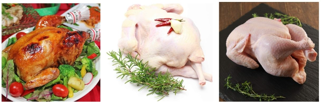 クリスマスや新年の祝宴を豪華にするのにふさわしいローストチキンと丸鶏。