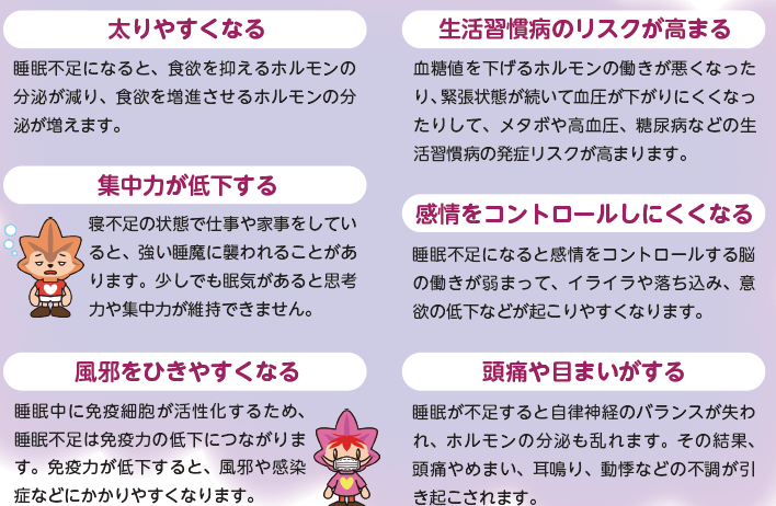 睡眠不足は集中力の低下やイライラの原因となり、モチベーションの低下にも繋がります。