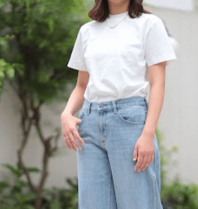 白T×ワイドパンツ