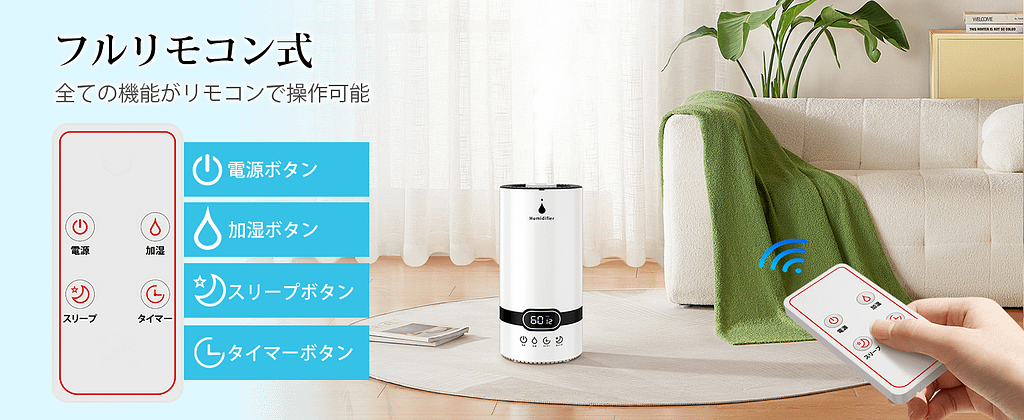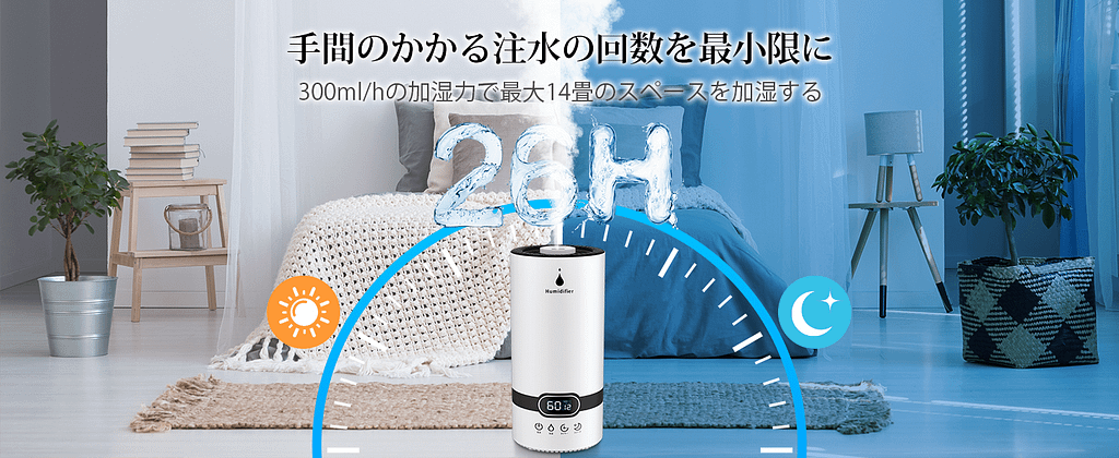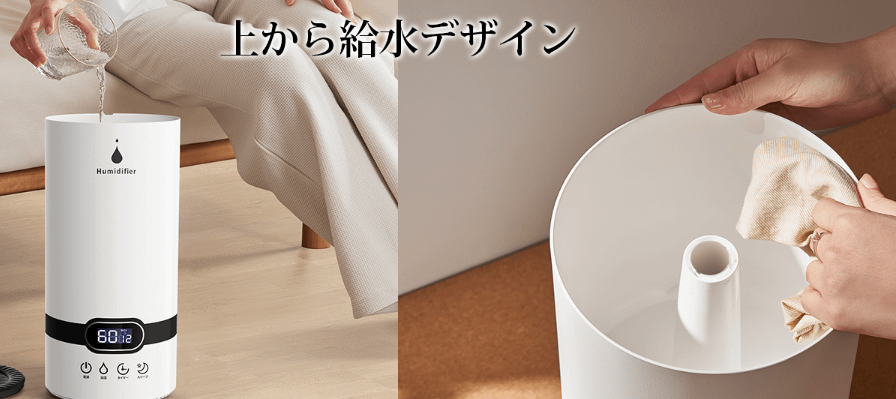 この加湿器は、実用性と使いやすさを重視したデザインで、多くの消費者のニーズに応える製品となっています。
