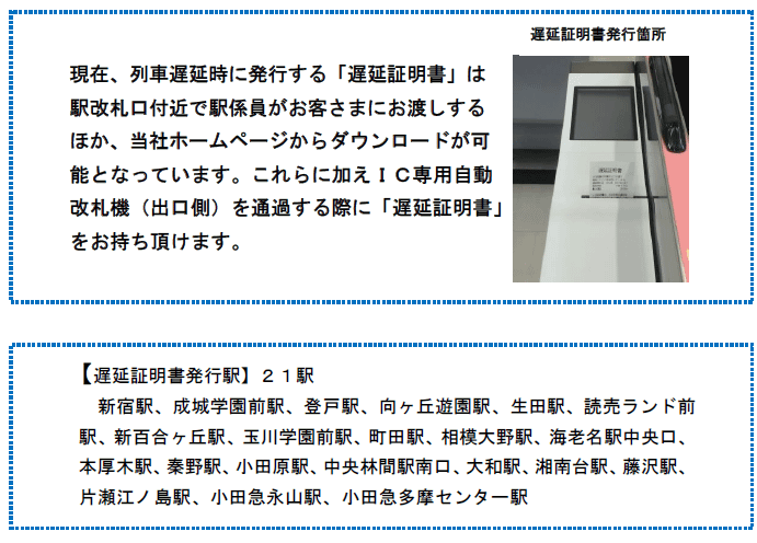 主要な駅では、自動で遅延証明書を発行できる機械が設置されている場合があります。