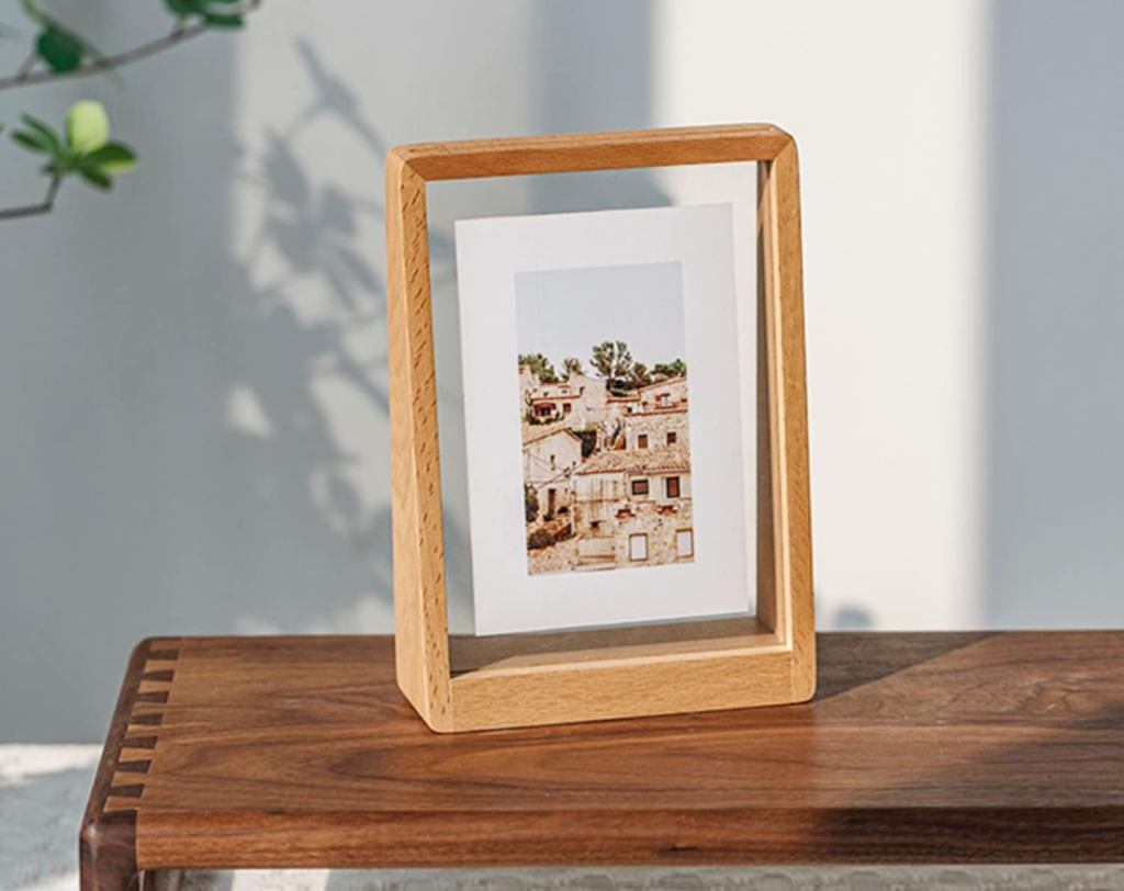 例えば、シンプルながら洗練されたデザインが人気の木製フォトフレーム。