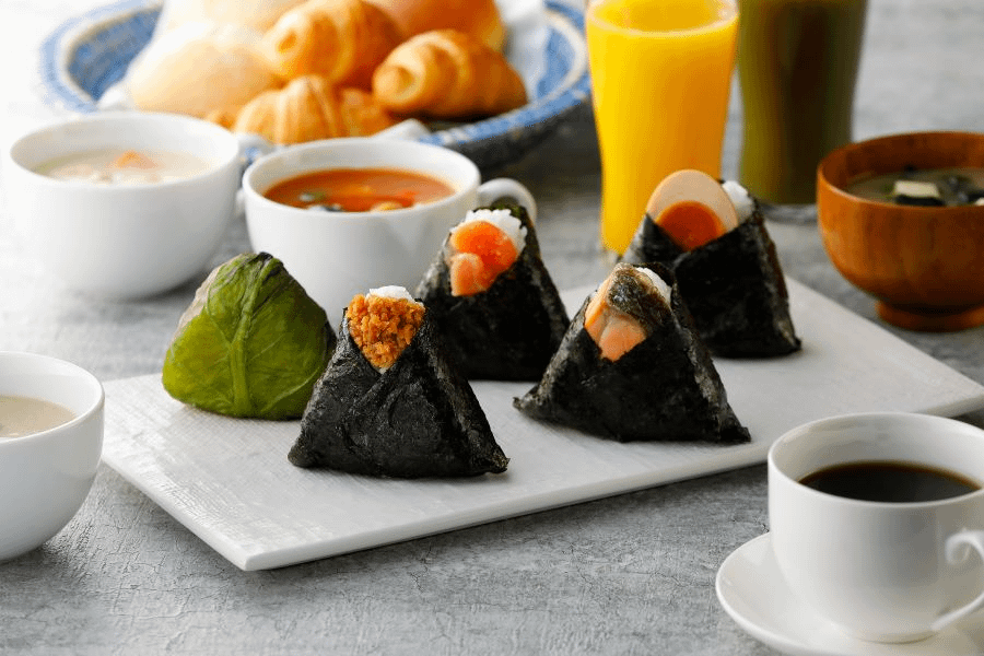 従来の充実したビュッフェスタイルに加えて、手軽に食べられる具だくさんおむすびと具だくさんサンドが新登場。