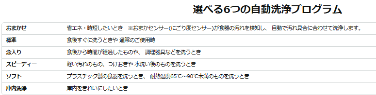 - 多機能で便利! 6つの自動洗浄プログラムで用途に合わせた使い方が可能。