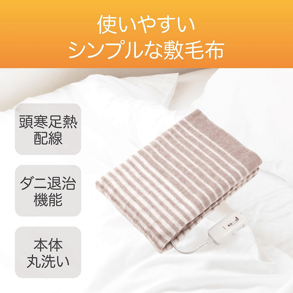 コイズミ電気毛布KDS-40242は、足元から温める頭寒足熱配線や、清潔を保つための丸洗い機能・ダニ退治機能が魅力のアイテム。