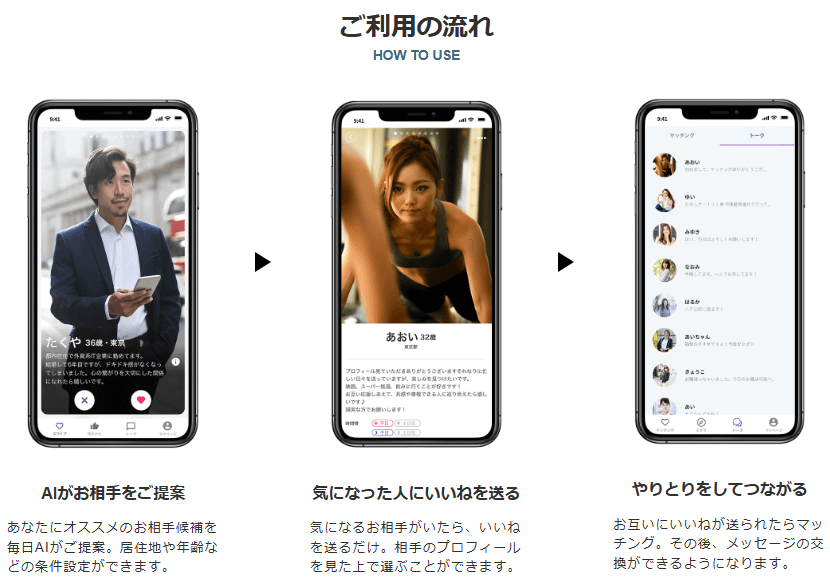そのAIがマッチングのみならず、24時間365日サイト内を巡回監視し、悪質なユーザーや業者・サクラなどを排除できるようチェックしているというという部分も注目すべき点ですね。