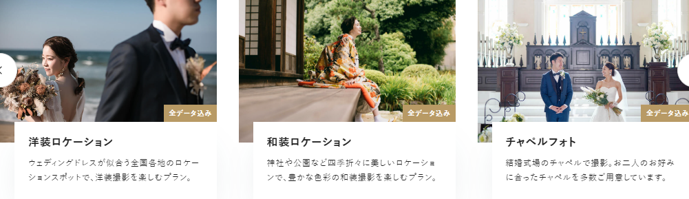 | データ込みプラン | 和装スタジオ・洋装スタジオ・和装ロケーション・洋装ロケーション |
