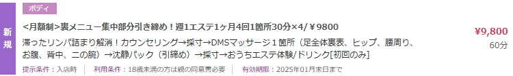 汗かきエステには、1回ごとの単発プランや回数券プランなど、さまざまなコースが用意されています。初心者にはお試しコースがおすすめです。