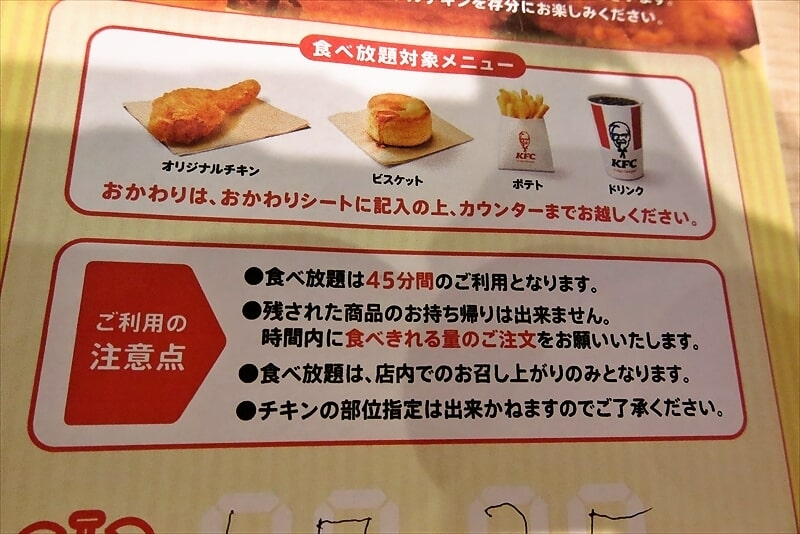 ケンタッキー食べ放題メニュー