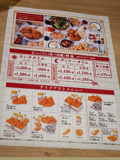 料金はランチとディナーで異なり、大人1980円からと手頃です。限られた時間内でフライドチキンを存分に堪能し、家族や友人と楽しいひとときを過ごせますので、食べ放題好きにはぴったりなプランです。