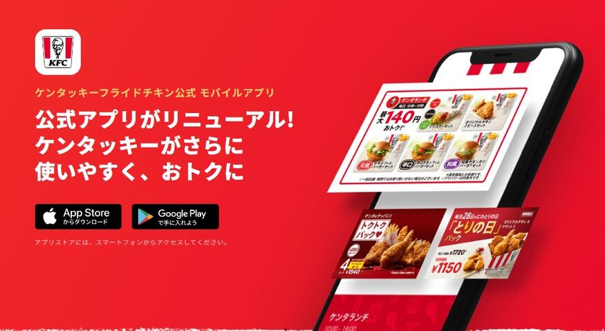 ケンタッキーでお得に食べたいなら、KFCの公式アプリをダウンロードしてみてください。会員登録も不要で、すぐにクーポンが使えます。さらに、アプリでは「KFCマイレージプログラム」でチキンマイルが貯まり、色々な特典があります。使いたいクーポンを選んで、レジで番号を見せるだけで、他のクーポンよりもお得にお食事が楽しめます。