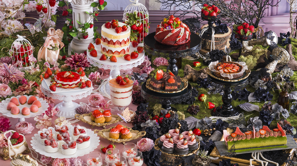いちごスイーツビュッフェでは華やかな妖精の世界と暗い魔女の世界という二つの異なるテーマが表現されています。