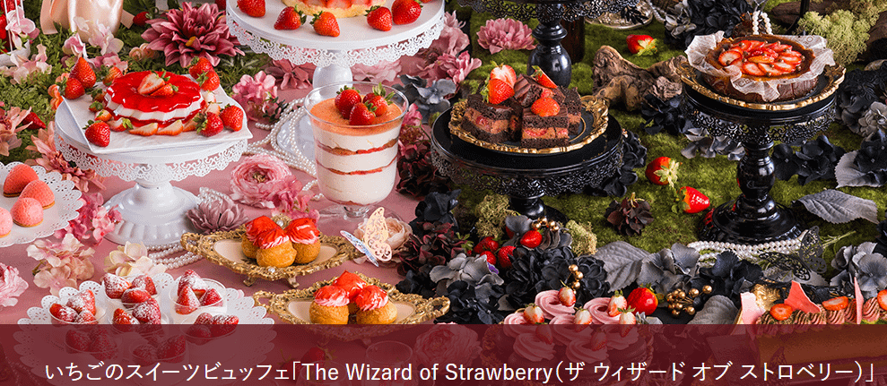 「The Wizard of Strawberry」は、旬のいちごをふんだんに使用したスイーツビュッフェです。いちご好きにはたまらない多彩なメニューが揃い、見た目も華やかでインスタ映えすること間違いなし。甘酸っぱい香りに包まれながら、贅沢なひとときを楽しめます。