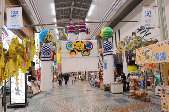 駅前の商店街が色とりどりの七夕飾りで彩られ、屋台グルメや賑やかなイベントが目白押し。
