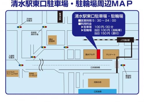 清水駅から徒歩8分駅近で利便性が高く、駐車台数も多めなため比較的安心して利用できます。