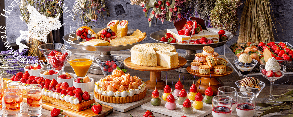 北海道産の新鮮な食材をふんだんに使用した多彩な料理に加え、旬のいちごを贅沢に使った華やかなスイーツが一堂に集結。
