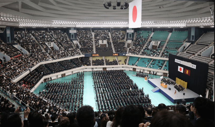 2025年の春に多くの新入生が日本武道館で大学の入学式を迎えます。