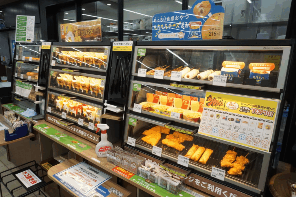 また、一部の店舗では夜限定で「おつまみセット」や「お酒に合う軽食メニュー」も販売されています。唐揚げや枝豆、チーズ入りソーセージなどが人気で、仕事帰りにちょっと一杯楽しみたい人にも重宝されています。
