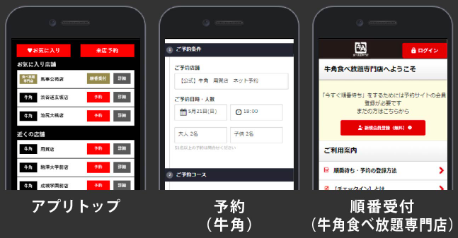 牛角食べ放題専門店は以下のアプリから直接、順番受付ができます。