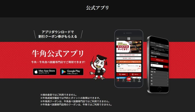 牛角公式アプリ→https://www.gyukaku.ne.jp/appli.php